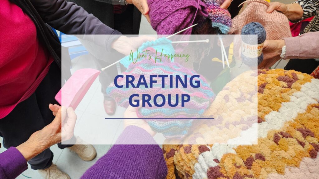 Do you have a craft project calling your name – knitting, crocheting, cross-stitch, quilting, needlepoint, or something else creative? Maybe it’s a project you started with great enthusiasm and then… life happened. You’re in good company. Or maybe you usually craft on your own and would enjoy doing it alongside other lovely people.